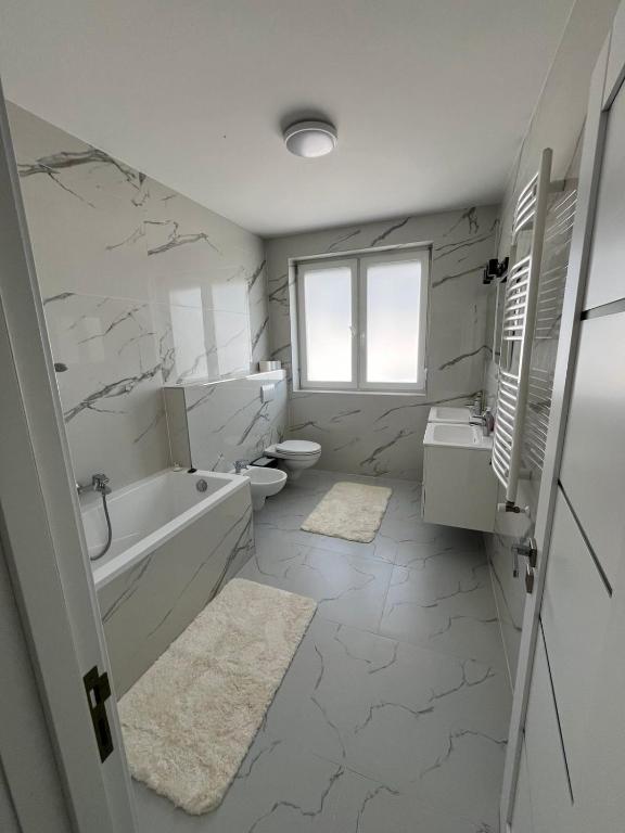 Itt található három különálló hálószoba és egy kényelmes, dupla mosdóval, bidével és káddal ellátott fürdőszoba is. Különálló háztartási helyiség biztosítja, hogy a gépek zaja ne zavarja a nyugodt pihenést, valamint az egyik hálószobából nyílik egy hangulatos erkély, amely tökéletes helyszín a reggeli kávézáshoz.