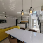 Az ingatlan jól átgondolt elrendezésű, így kiválóan alkalmas akár nagyobb családok részére is, hiszen a tágas amerikai konyha nappalihoz még 4 hálószoba tartozik. Minőségi, modern burkolatok kerültek minden helyiségbe, a konyha teljesen gépesített és már a harmóniában ide illő magas fényű konyhabútor is beszerelésre került.