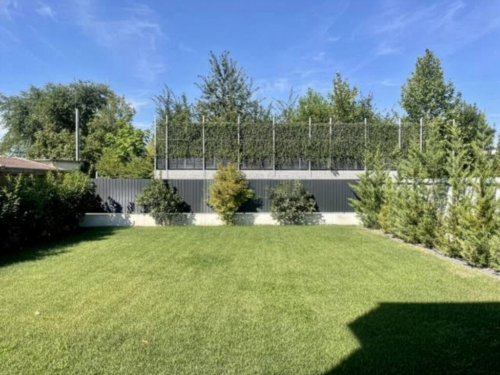 A füvesített, öntözőrendszerrel ellátott kert kellemes, barátságos légkört biztosít, mely kiváló helyszíne lehet a kerti sütögetésnek és a családi összejöveteleknek.
